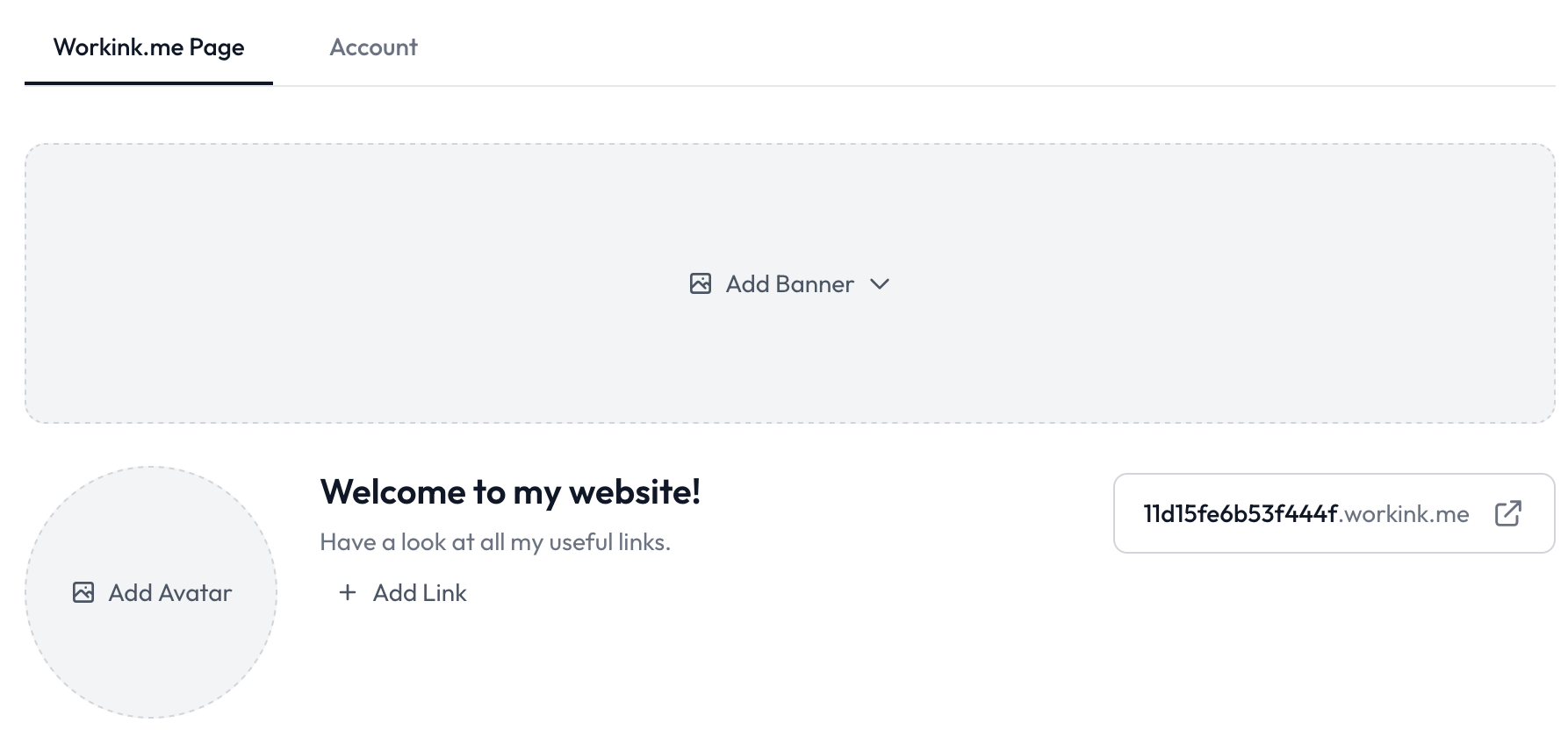 Now you can see a text-field where you can enter your desired subdomain. After confirming, your Work.ink Page will be available under the workink.me-Domain that's shown. You can open your workink.me-Website by simply clicking it in the Dashboard. Here you will see all your links.