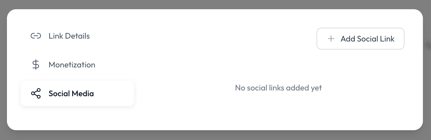 You can activate this feature at the bottom of the Dashboard by adding your social medias there. To do this, press the "Add Social Link"-Button to open the menu: