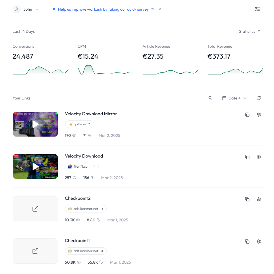 - High Payout Rates: Work.ink’s draw is the high payouts per view. It claims to provide “the highest payout rates on the market” through its advanced monetization methods. Essentially, advertisers are paying Work.ink to get viewers’ attention briefly, and Work.ink shares that revenue with you. Compared to generic link shorteners or basic banner ads, the earnings per visitor can be much higher. This can be especially beneficial if you have substantial traffic or social media followers – every click counts.