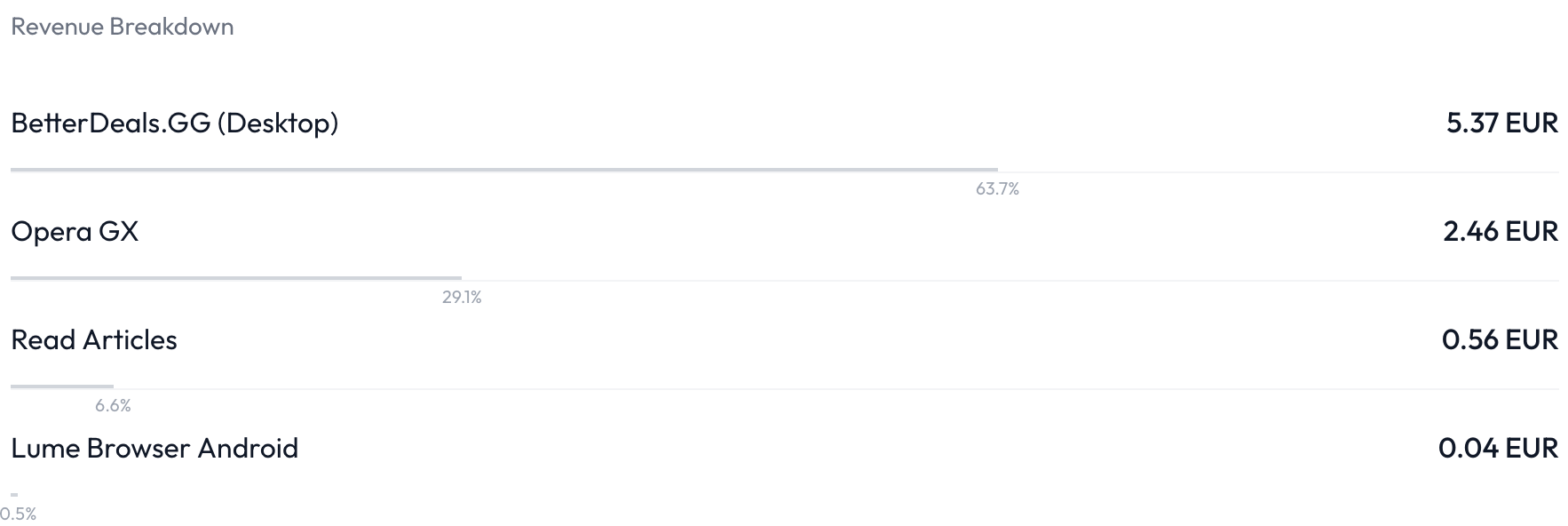 Below the graph, you can see more detailed statistics about which monetization made you how much money: